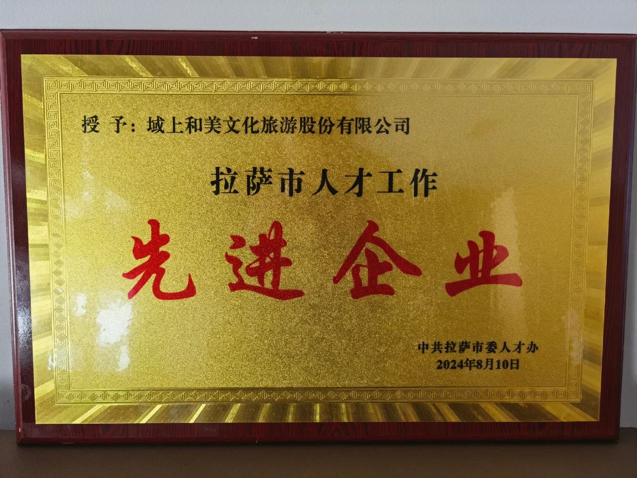 喜訊!域上和美文化旅游股份有限公司榮獲拉薩市人才工作先進(jìn)單位表彰