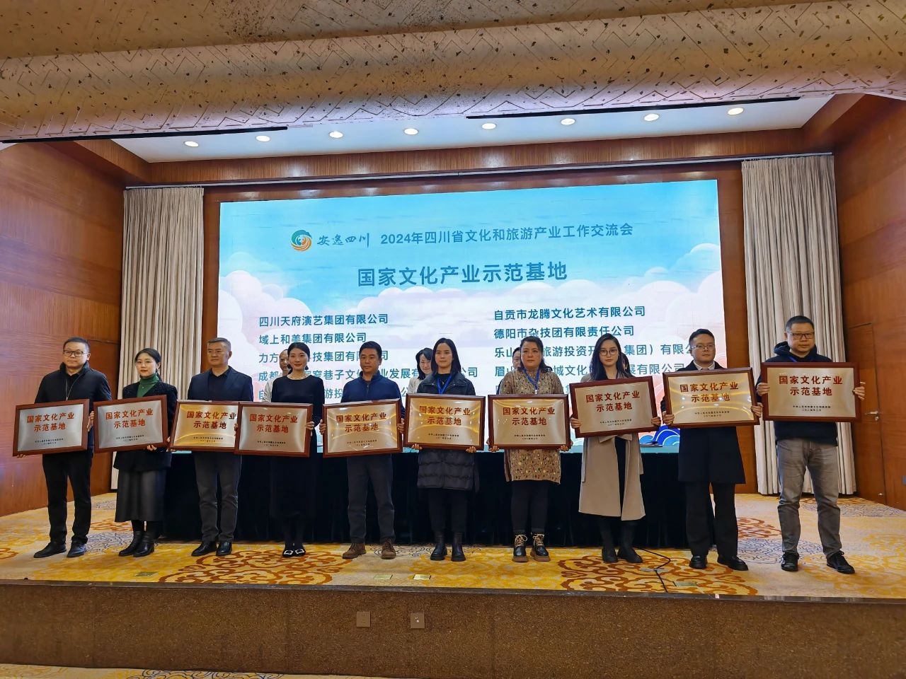 會(huì)上,省文旅廳集中為全省2023年獲得國(guó)家文化產(chǎn)業(yè)示范基地、國(guó)家級(jí)夜間文化和旅游消費(fèi)聚集區(qū)、國(guó)家工業(yè)旅游示范基地等國(guó)家級(jí)文旅品牌的企業(yè)和單位進(jìn)行了授牌。域上和美集團(tuán)作為四川省文化旅游產(chǎn)業(yè)優(yōu)秀龍頭企業(yè),獲評(píng)文化和旅游部“國(guó)家文化產(chǎn)業(yè)示范基地”稱號(hào),并在本次會(huì)議上喜獲授牌。