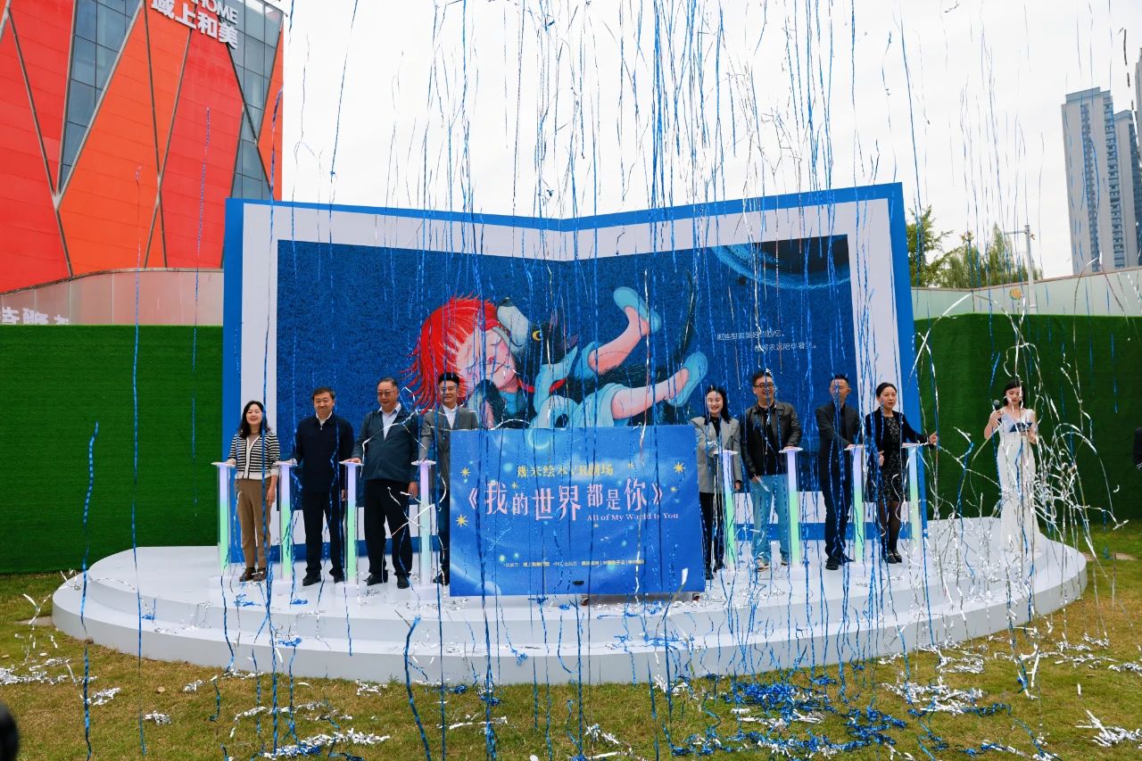 隨后,參加首演儀式的領(lǐng)導(dǎo)和嘉賓代表受邀上臺,共同按下啟幕按鈕,繪本裝置徐徐展開,以更多元的視角呈現(xiàn)在大家面前,項目正式啟幕。