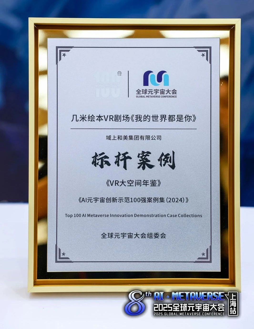1月20日,“第八屆數(shù)智中國科技周·2025全球元宇宙大會上海站”在馬橋召開。此次大會由閔行區(qū)經(jīng)濟委員會、閔行區(qū)科學技術(shù)委員會、閔行區(qū)商務(wù)委員會、閔行區(qū)文化和旅游局、閔行區(qū)馬橋鎮(zhèn)人民政府指導,由中國移動通信聯(lián)合會、MASA聯(lián)合主辦。幾米繪本VR劇場《我的世界都是你》成功入選《AI元宇宙創(chuàng)新示范100強案例集(2024)》VR大空間領(lǐng)航標桿案例,域上和美文化發(fā)展有限公司文旅事業(yè)部經(jīng)理夏紅代表集團領(lǐng)獎。