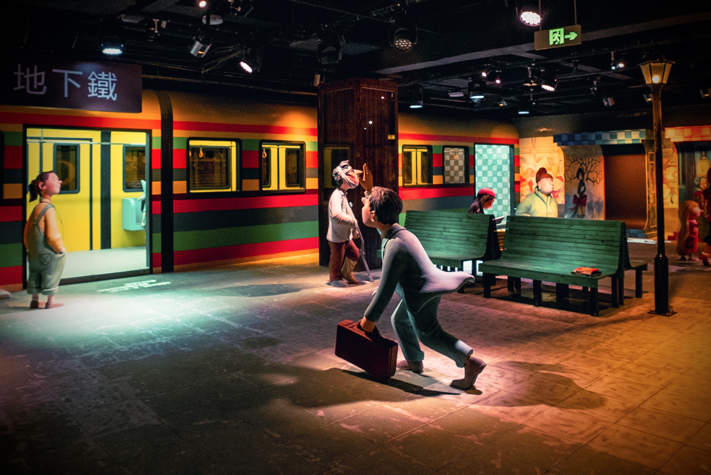 幾米式文字投影、昏暗的地下鐵、滴著水的雨傘與長椅……走進(jìn)劇場,繪本中的人物與情景立馬活了起來。觀眾跟隨一串串熟悉的小狗腳印,來到主人公溫柔的夢境。在夢里,月光下的小狗嗚咽聲、近在咫尺的小布狗玩偶、一封封從眼前飄過去往天堂的信箋……每一處細(xì)節(jié)都勾勒出主人公與狗狗真摯的情感。隨著故事情節(jié)的推進(jìn),觀眾還有飛翔、升起等體驗(yàn)。
