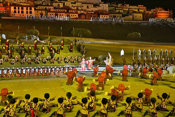 《文成公主》藏文化大型史詩劇由域上和美集團(tuán)、拉薩市布達(dá)拉文旅集團(tuán)出品,是唯一集數(shù)十種藏族非物質(zhì)文化遺產(chǎn)元素的藏文化經(jīng)典史詩巨作。據(jù)了解,《文成公主》藏文化大型史詩劇由序和《大唐之韻》、《天地梵音》、《藏舞大美》、《高原之神》、《藏漢和美》五幕構(gòu)成。作品深入到漢藏歷史文化、民族風(fēng)俗、自然景觀中發(fā)掘資源,綜合運(yùn)用大唐歌舞和西藏地區(qū)流傳久遠(yuǎn)的藏舞、藏戲、佛號念唱等藝術(shù)形式,以人工舞臺結(jié)合自然山川,以高科技手段呈現(xiàn)非物質(zhì)文化遺產(chǎn),把戲劇、音樂、舞蹈和現(xiàn)代舞美手段融為一爐,構(gòu)成華美樂章。