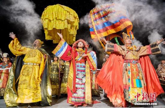 4月20日晚,拉薩,《文成公主》藏文化大型史詩劇再度開演。該劇以拉薩自然山水為背景,演繹了1300年前唐朝文成公主萬里跋涉、歷經(jīng)艱辛而無悔進(jìn)藏的過程。自2013年8月1日正式開演以來,該劇已成功度過四個(gè)演出季,完成演出622場,接待游客115萬人次。其中,2016年演出季共計(jì)演出186場,演出及旅游服務(wù)配套共計(jì)接待游客近40萬人次。中新社記者 何蓬磊 攝