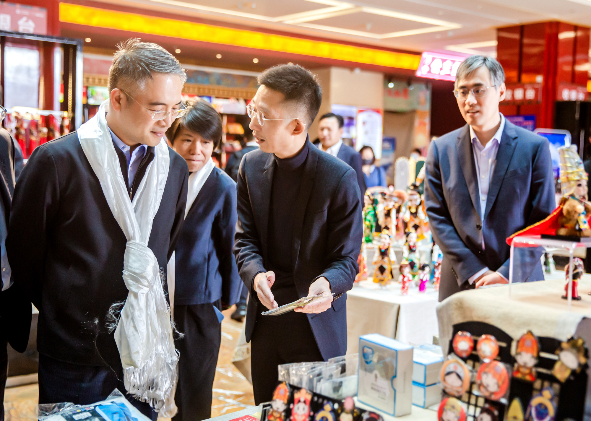 何平向谷澍介紹域上生活特色文創(chuàng)產(chǎn)品