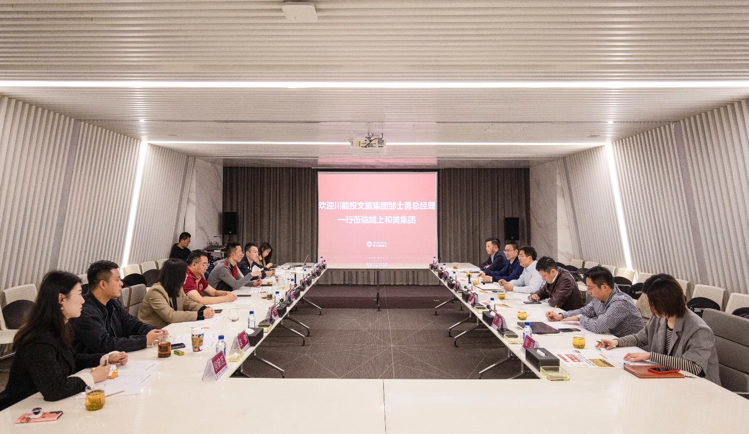 3月23日,四川能投文旅集團總經(jīng)理鄒士勇率隊赴域上和美集團考察交流,雙方就文旅新消費場景打造、文旅產(chǎn)業(yè)融合創(chuàng)新發(fā)展等座談交流。集團聯(lián)合創(chuàng)始人、副董事長何平及相關業(yè)務部門負責人參加座談。