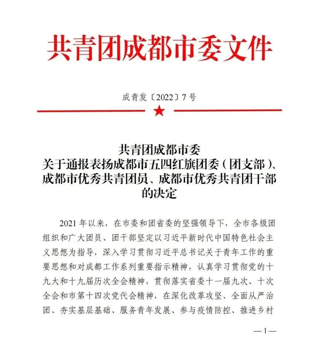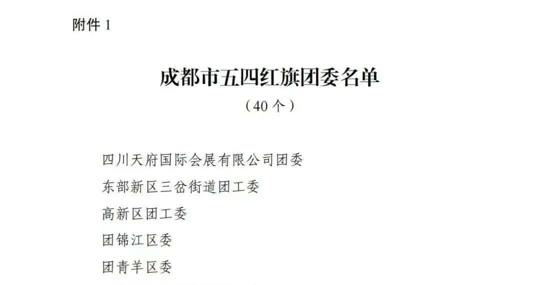 成都市五四紅旗團(tuán)委稱號(hào)旨在表彰2021年以來,在深化改革攻堅(jiān)、全面從嚴(yán)治團(tuán)、夯實(shí)基層基礎(chǔ)、服務(wù)青年發(fā)展、參與疫情防控、推進(jìn)鄉(xiāng)村振興和助力成渝地區(qū)雙城經(jīng)濟(jì)圈建設(shè)等重點(diǎn)工作領(lǐng)域作出了有力貢獻(xiàn)的先進(jìn)集體。