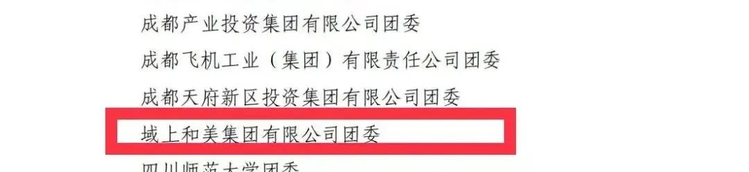 近日,共青團(tuán)成都市委發(fā)布了關(guān)于通報(bào)表?yè)P(yáng)成都市五四紅旗團(tuán)委(團(tuán)支部)、成都市優(yōu)秀共青團(tuán)員、成都市優(yōu)秀共青團(tuán)干部的決定,域上和美集團(tuán)有限公司團(tuán)委與高新區(qū)團(tuán)工委、團(tuán)錦江區(qū)委、團(tuán)青羊區(qū)委等40個(gè)團(tuán)組織,榮獲“成都市五四紅旗團(tuán)委”稱號(hào)。