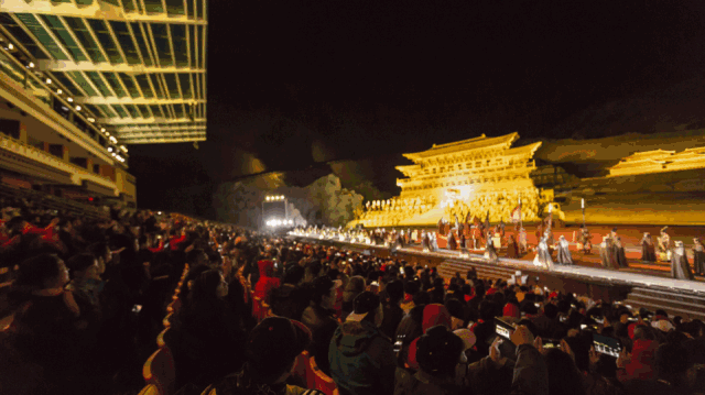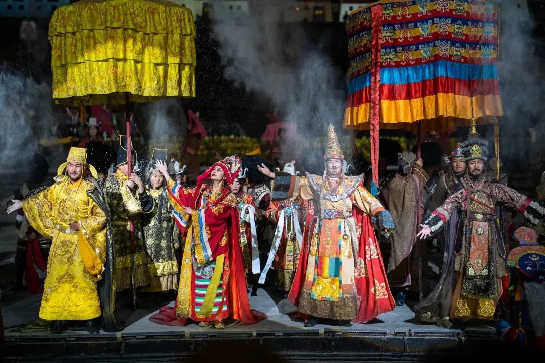 作為享譽(yù)全國的“西藏文化旅游名片”,《文成公主》以數(shù)百位演員的磅礴陣容,融燦爛唐音和藏風(fēng)吟唱于一體;以數(shù)十種非遺文化和諸多震撼“大場(chǎng)面”,繪就民族和融的聲舞長卷;以原生態(tài)表演碰撞現(xiàn)代舞臺(tái)聲光電,創(chuàng)造出變幻多姿、全景式的壯闊觀看體驗(yàn)。
