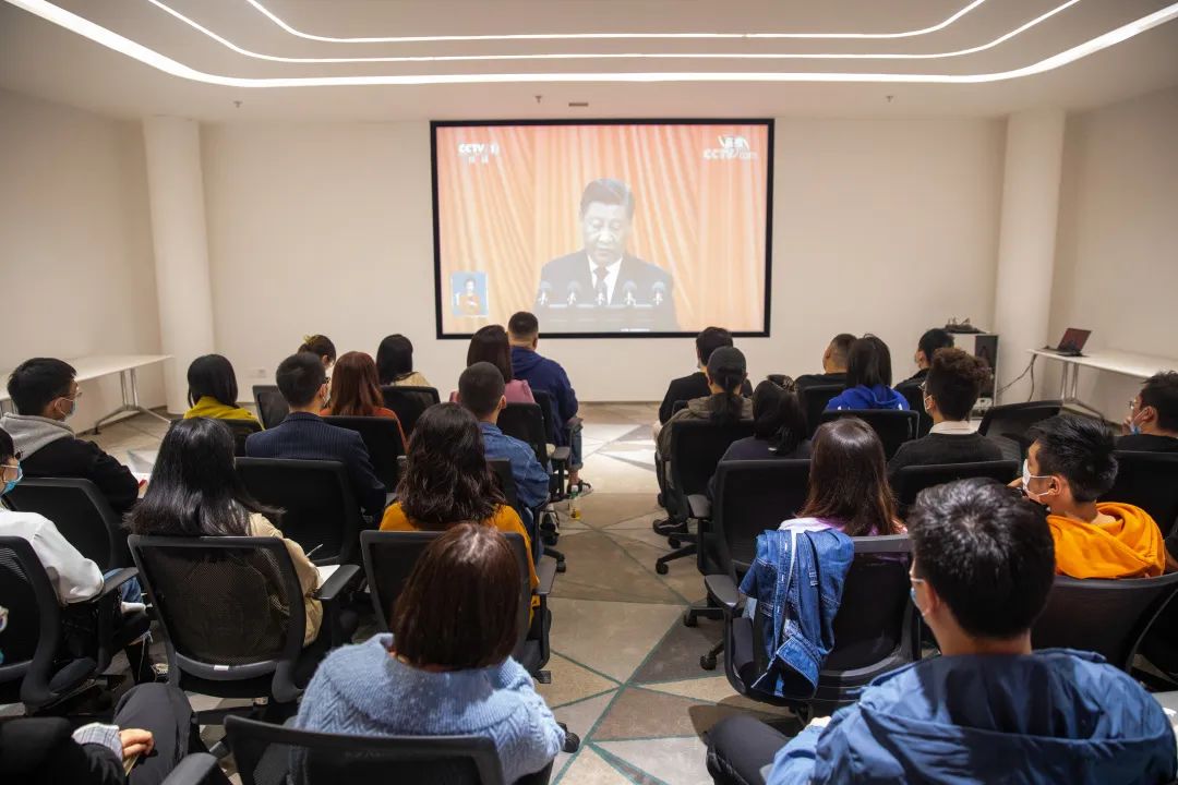 集團(tuán)黨委成員、經(jīng)營班子成員和黨員職工代表集中收看大會直播