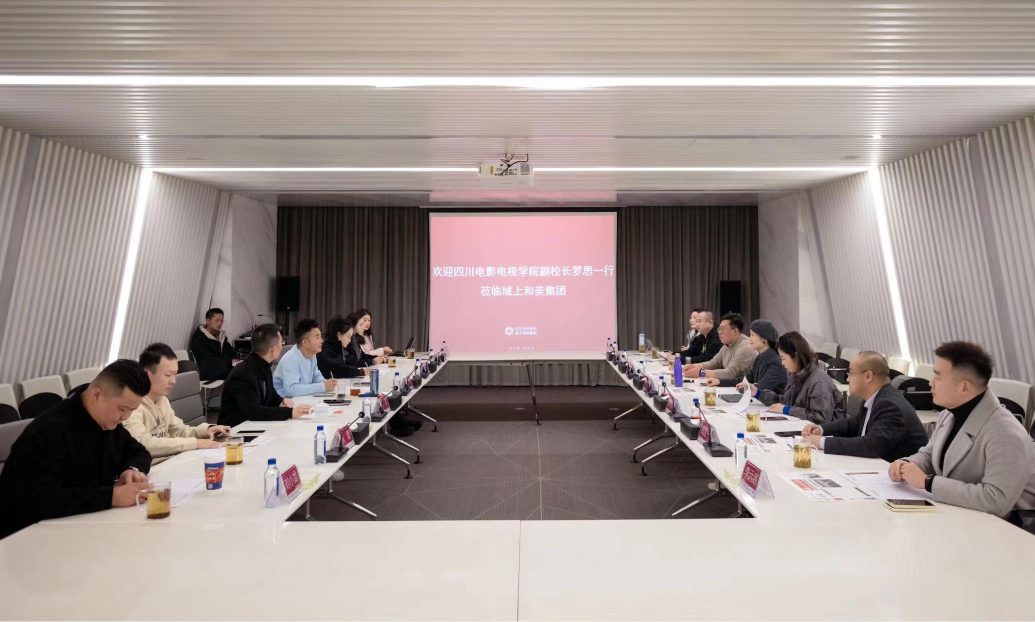 1月18日,四川電影電視學院黨委副書記、副校長羅思率隊赴域上和美集團考察。集團創(chuàng)始人、董事長邱偉接待考察團一行并座談交流。