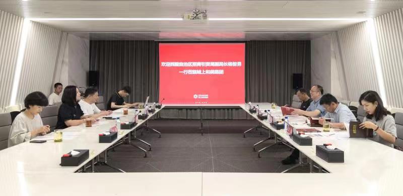 7月4日,西藏自治區(qū)招商引資局副局長(zhǎng)楊智勇率隊(duì)到訪域上和美集團(tuán)調(diào)研交流。域上和美集團(tuán)副總裁吳偉、域上和美文化發(fā)展有限公司副總裁陳瑯等接待調(diào)研組一行。