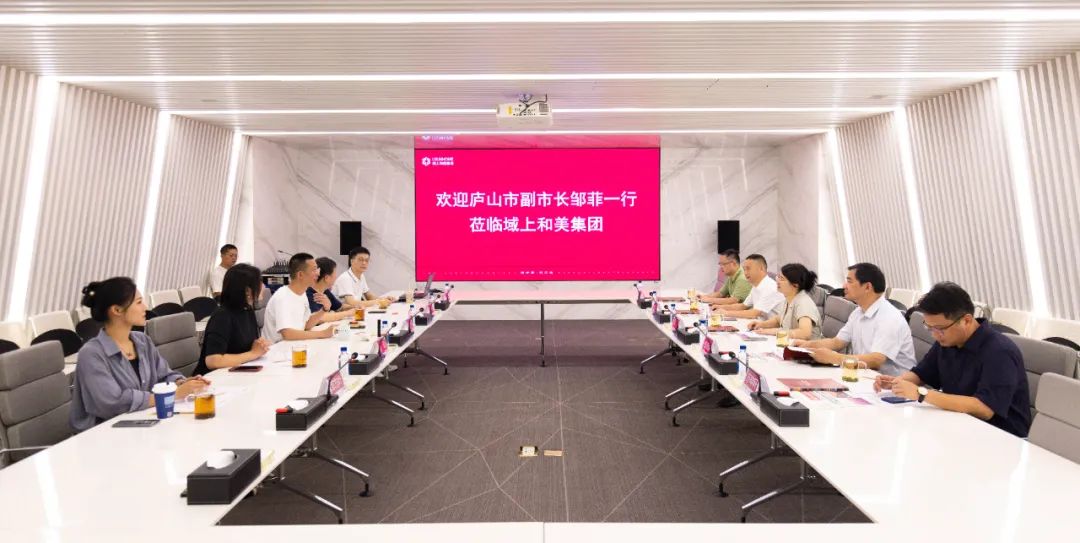 何平副董事長(zhǎng)對(duì)鄒菲副市長(zhǎng)一行的到訪表示熱烈歡迎,并介紹了域上和美集團(tuán)發(fā)展概況和戰(zhàn)略規(guī)劃布局。他談到,廬山市作為享譽(yù)國(guó)際的人文旅游勝地,歷史文化璀璨,自然風(fēng)光綺麗,文旅資源稟賦獨(dú)特,擁有廣闊的文旅市場(chǎng)發(fā)展空間。域上和美集團(tuán)致力于中華優(yōu)秀傳統(tǒng)文化的創(chuàng)造性轉(zhuǎn)化和創(chuàng)新性發(fā)展,擅長(zhǎng)通過(guò)重大文旅IP的市場(chǎng)化開(kāi)發(fā)運(yùn)營(yíng),賦能旅游景區(qū)文化消費(fèi)和深度文旅體驗(yàn),引領(lǐng)帶動(dòng)區(qū)域整體發(fā)展。集團(tuán)期待進(jìn)一步加強(qiáng)與廬山市的溝通交流,探尋合作契機(jī)。