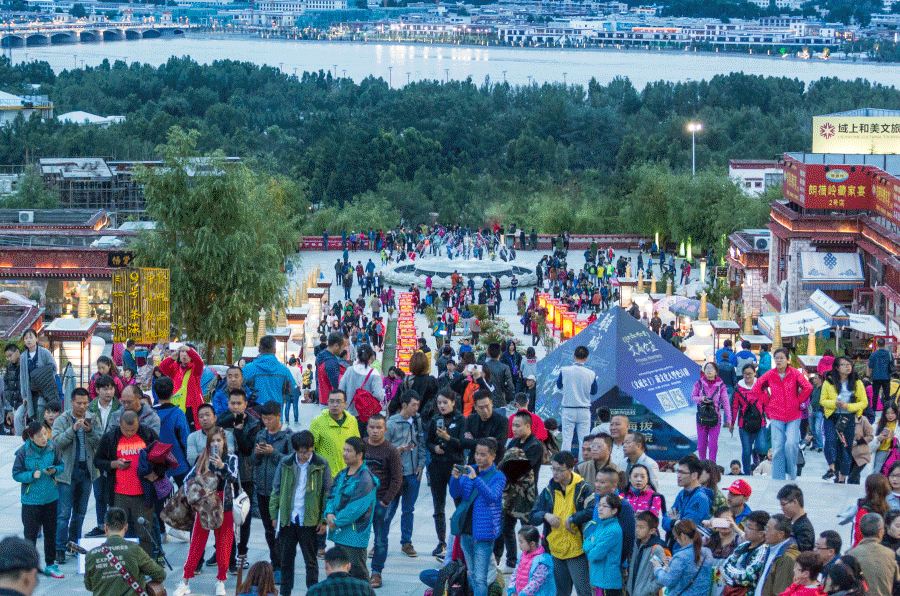文成公主劇場及慈覺林藏院風(fēng)情街人潮如織