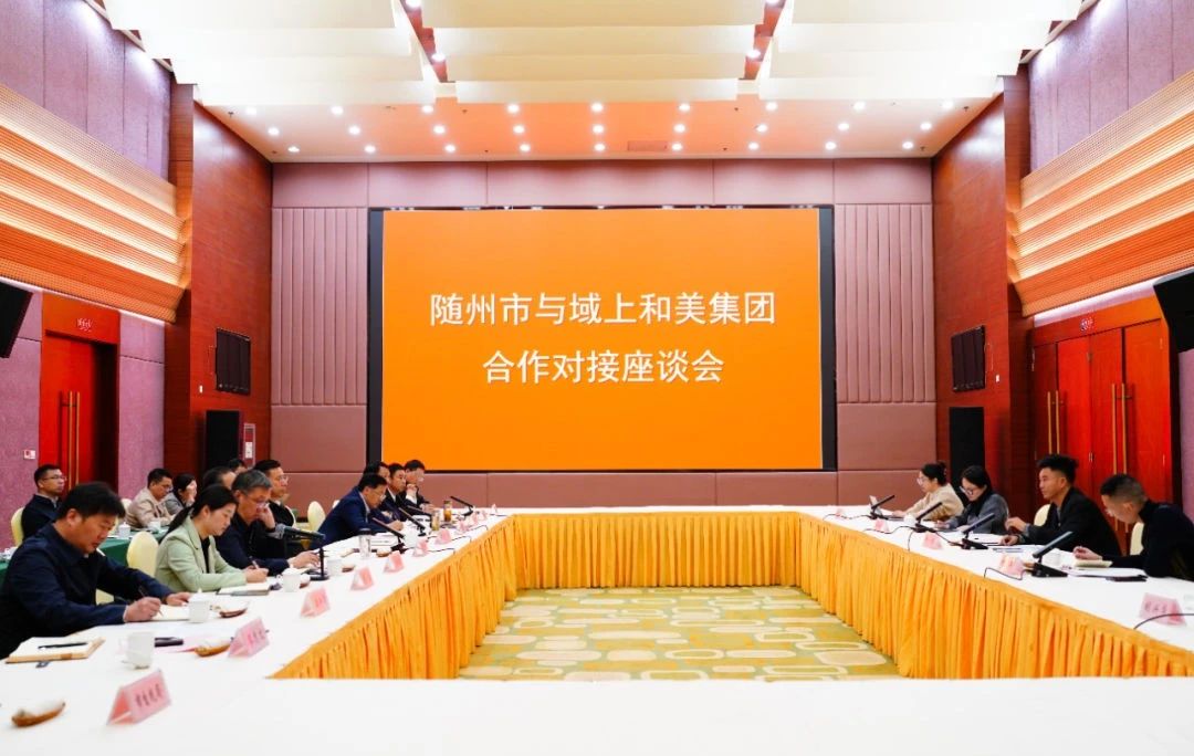 10月23日,隨州市委、市政府與域上和美集團(tuán)舉行合作對(duì)接座談會(huì)。隨州市委書(shū)記錢(qián)遠(yuǎn)坤,市委副書(shū)記、市長(zhǎng)克克,域上和美集團(tuán)董事長(zhǎng)邱偉、副董事長(zhǎng)何平出席會(huì)議;隨州市委常委、市委秘書(shū)長(zhǎng)陳興旺,市委常委、宣傳部部長(zhǎng)羅棟梁,市政府副市長(zhǎng)羅蘭,市政府秘書(shū)長(zhǎng)金厚鵬,市政府副秘書(shū)長(zhǎng)汪興國(guó),域上和美集團(tuán)執(zhí)行總裁李元媛,隨州市文化和旅游局、炎帝神農(nóng)故里風(fēng)景區(qū)管委會(huì)、市國(guó)投集團(tuán)主要負(fù)責(zé)人,隨州市委宣傳部分管負(fù)責(zé)人,及域上和美文化發(fā)展有限公司有關(guān)負(fù)責(zé)人參加會(huì)議。