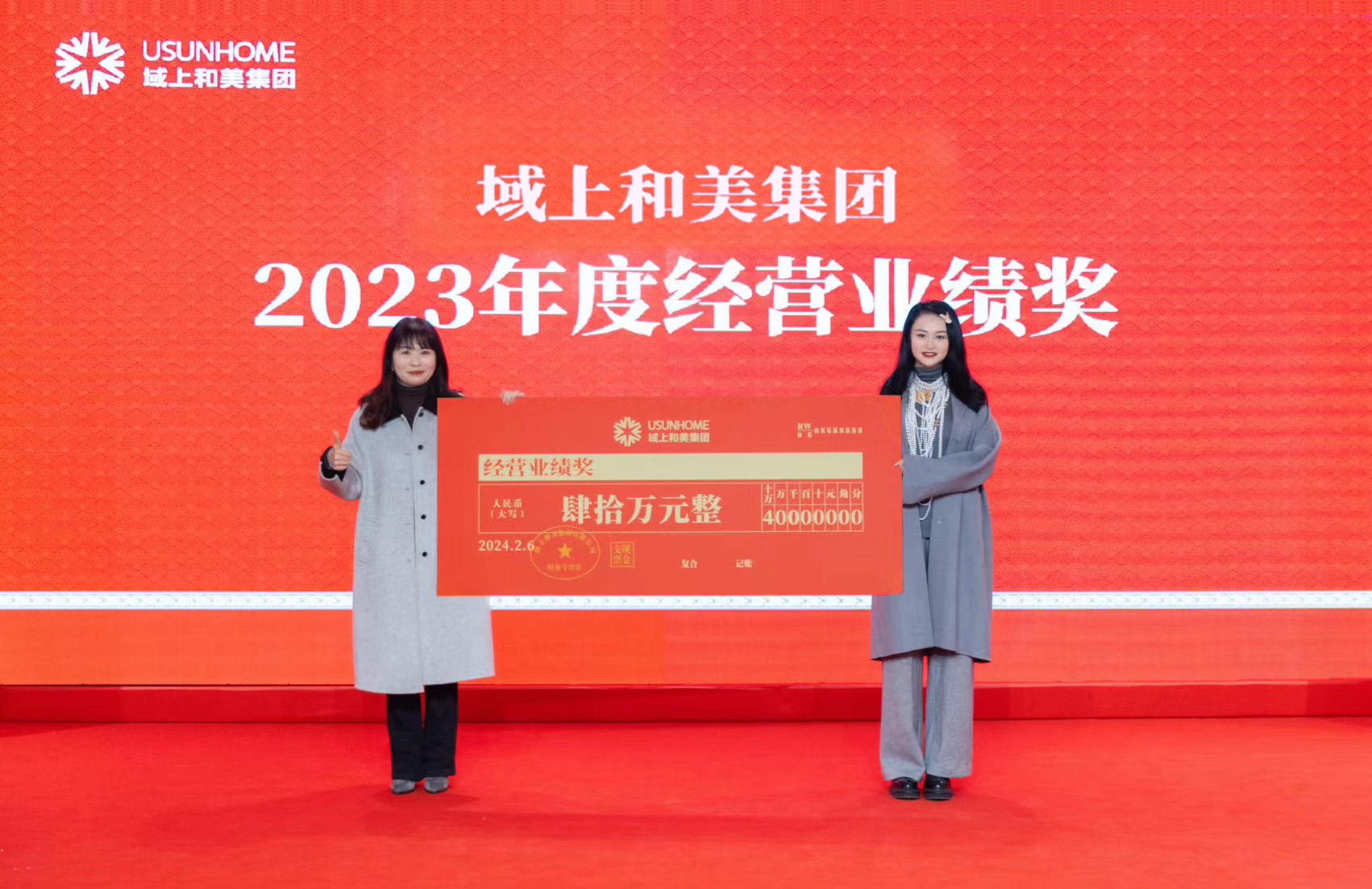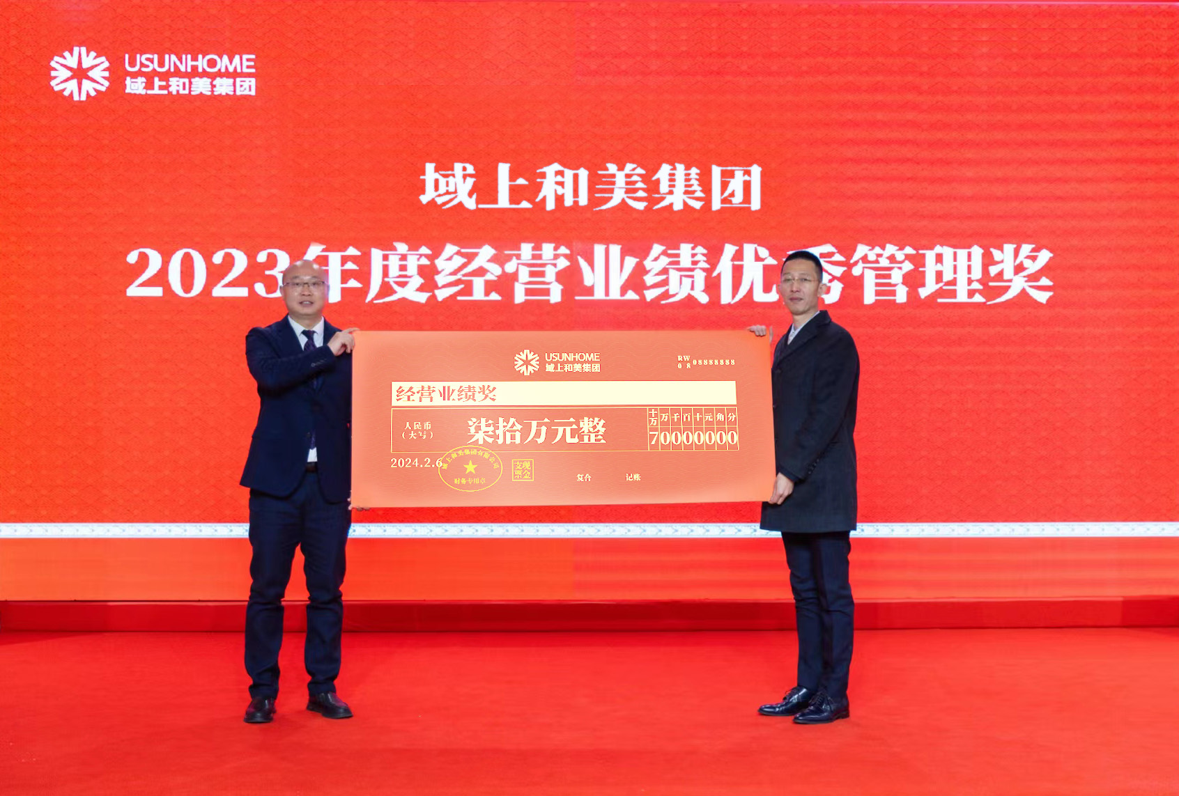 會(huì)議公布了集團(tuán)重要人事任命。大會(huì)對(duì)2023年度35位優(yōu)秀員工、11個(gè)優(yōu)秀團(tuán)隊(duì)、3個(gè)經(jīng)營業(yè)績優(yōu)秀團(tuán)隊(duì)及14個(gè)優(yōu)秀業(yè)績支持部門進(jìn)行了表揚(yáng)與嘉獎(jiǎng)。本次頒獎(jiǎng),旨在樹立榜樣,激勵(lì)先進(jìn),鼓舞更多和美人奮發(fā)有為,努力擔(dān)當(dāng)。和美布達(dá)拉有限公司總經(jīng)理李兆上臺(tái)發(fā)表獲獎(jiǎng)感言。